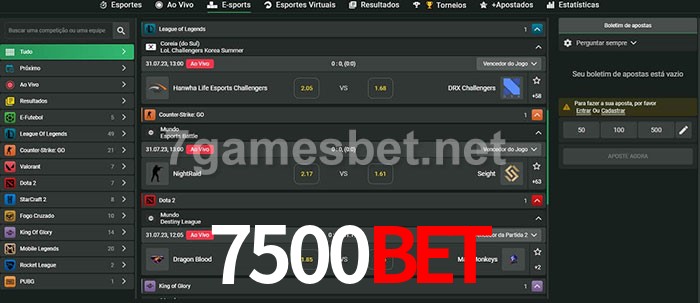 A aposta 7500Bet oferece aos jogadores a experiência mais conveniente de apostas em eSports!